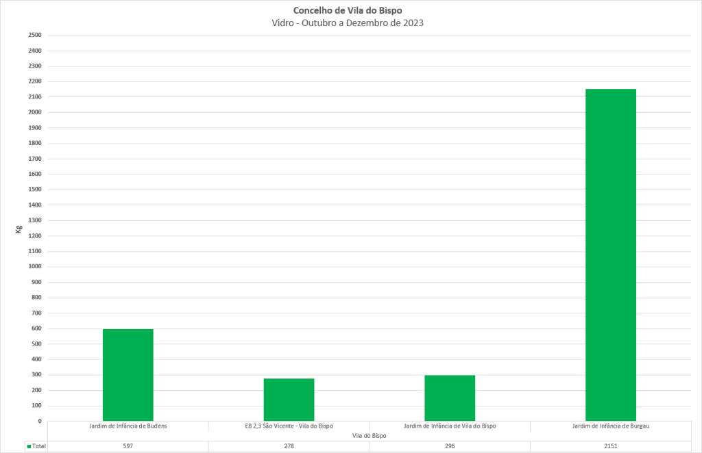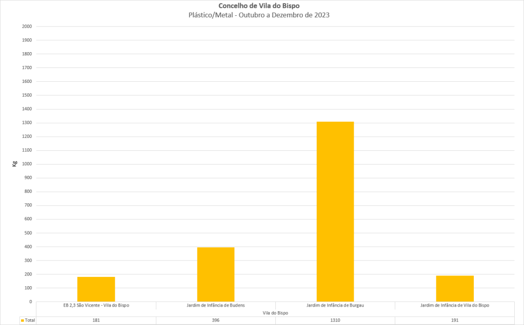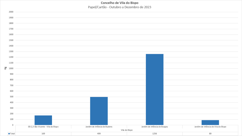 Abaixo apresentam-se os gráficos com o ranking por material no Concelho de Vila do Bispo.