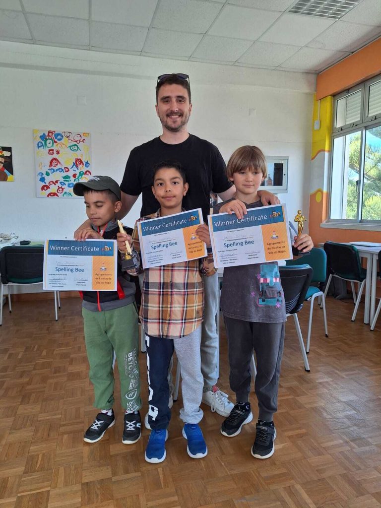 No dia 20 de junho decorreu, na Biblioteca Escolar da Escola EB2,3 São Vicente, a final do concurso de Spelling Bee relativo à disciplina de Inglês do 1.º CEB. Alunos do 3.º e 4.º ano de escolaridade das várias escolas do Agrupamento competiram entre si e aplicaram as suas competências em língua inglesa de forma formidável. A final contou com a presença dos alunos de várias turmas do Professor Cláudio Santos, nomeadamente: